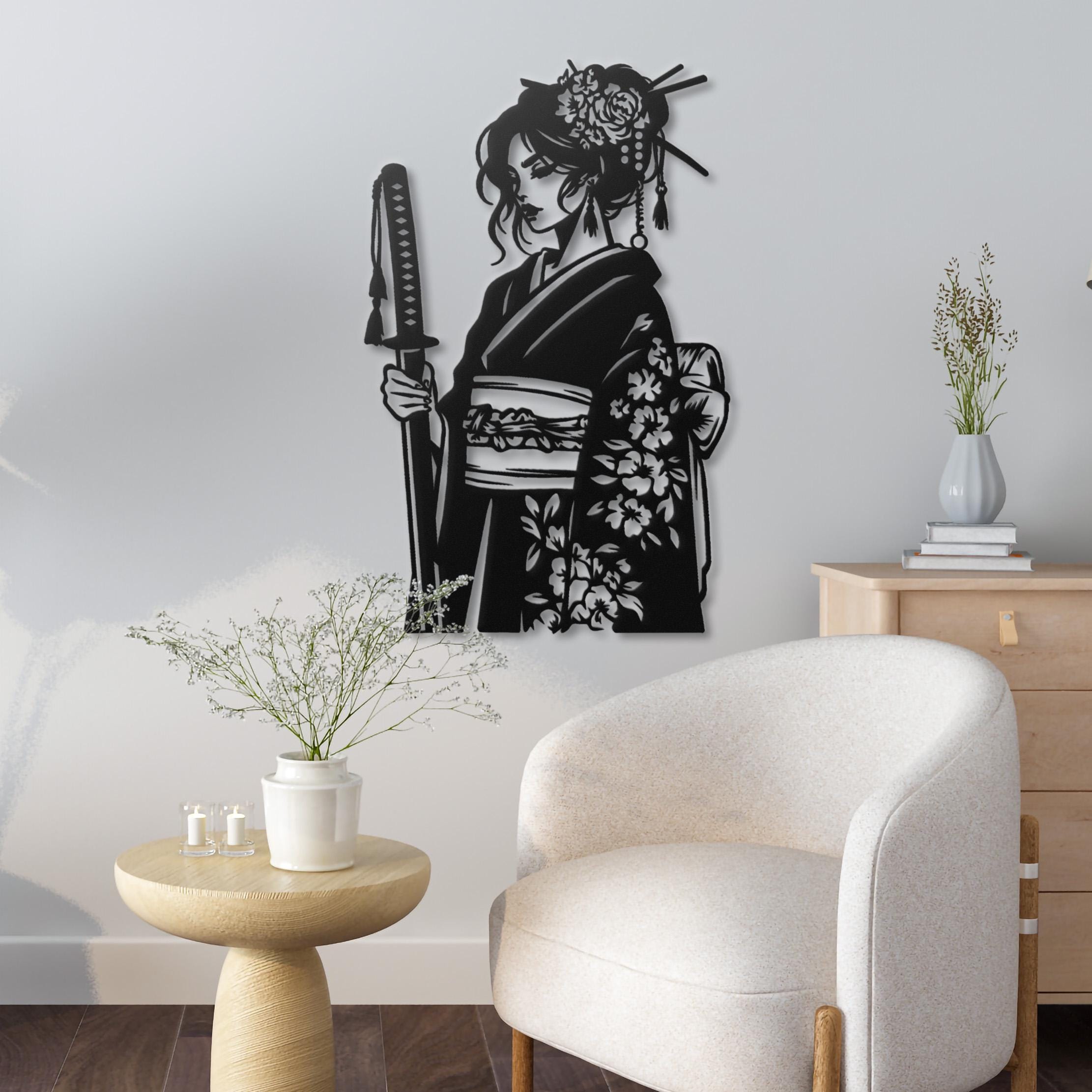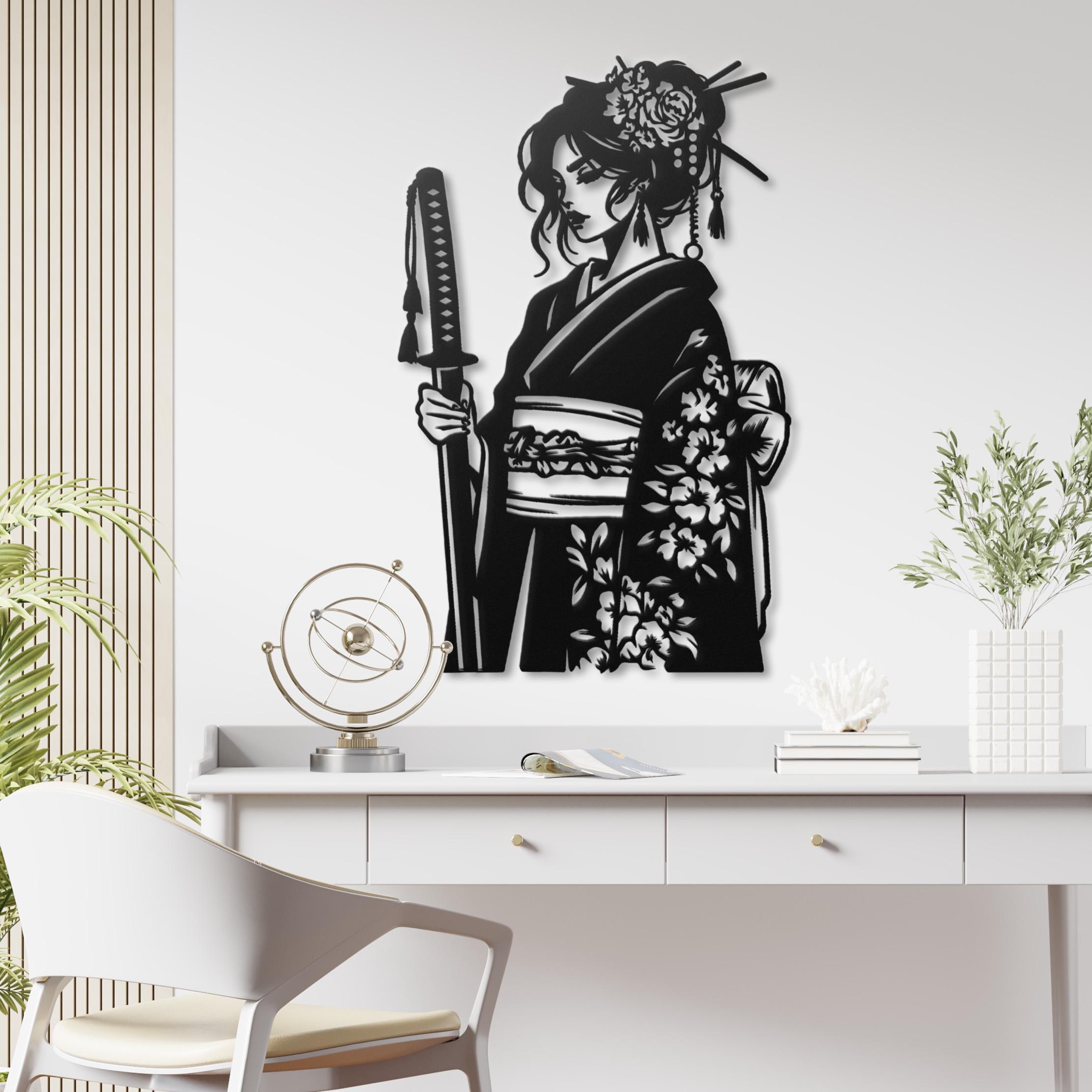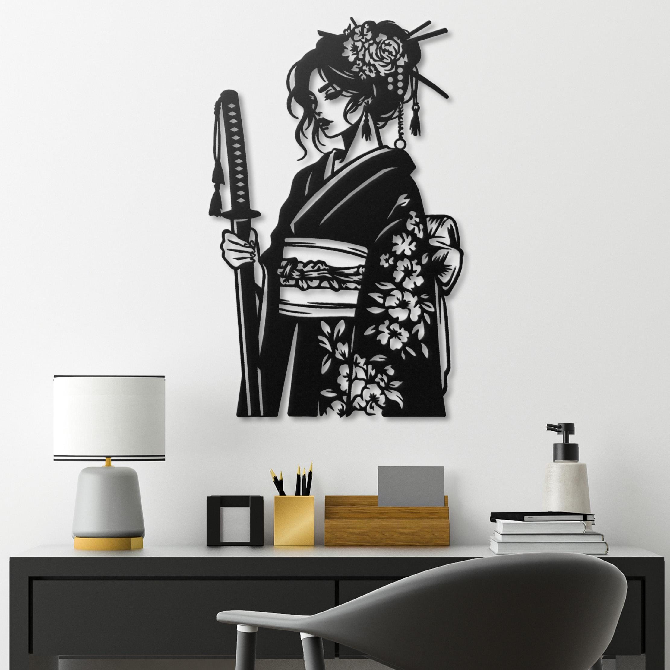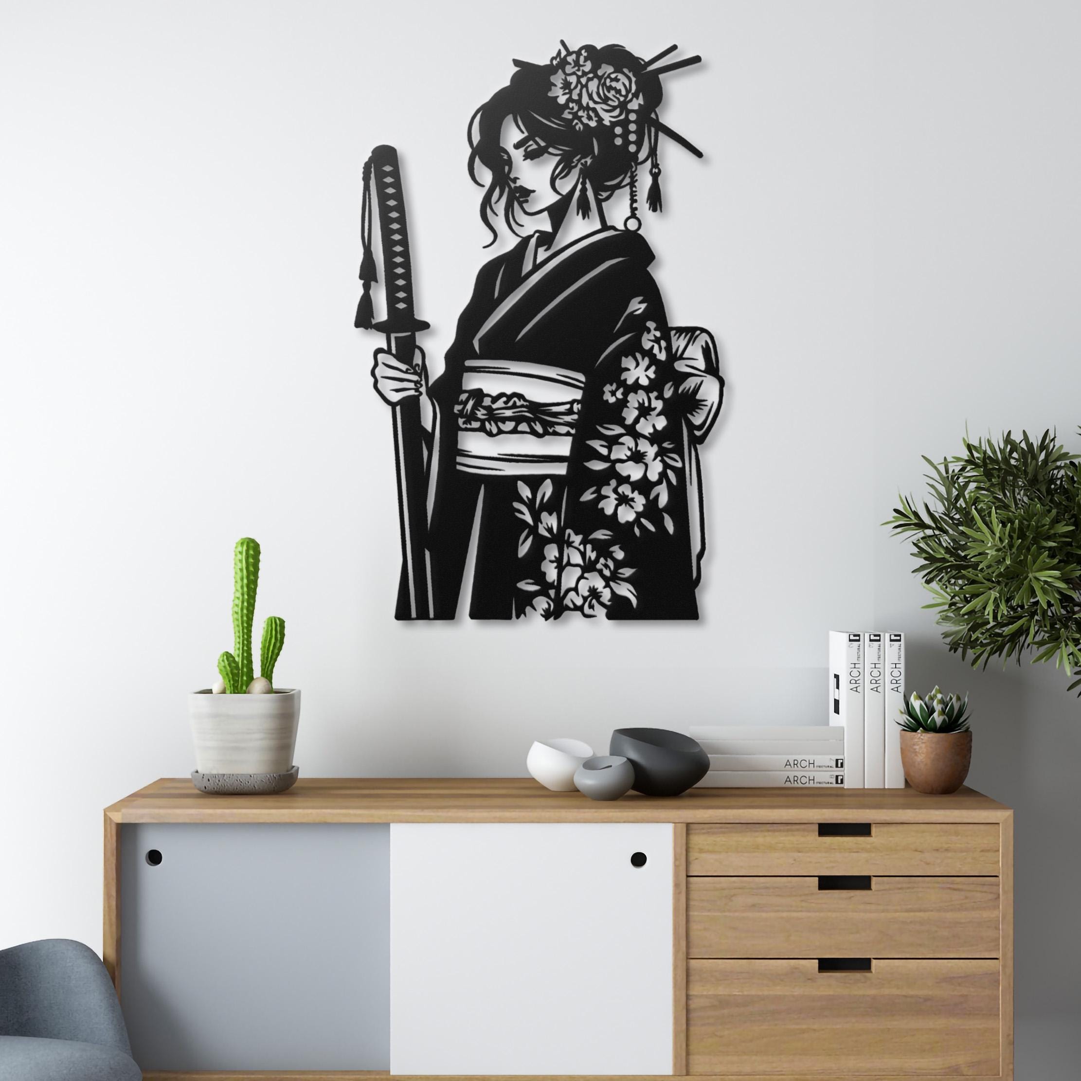 Geisha Samurai Metal Wall Art, Japanese Onna Bugeisha Decor, Female Warrior Katana Sign, Anime Wall Hanging, Asian Zen Art, Gift for Her