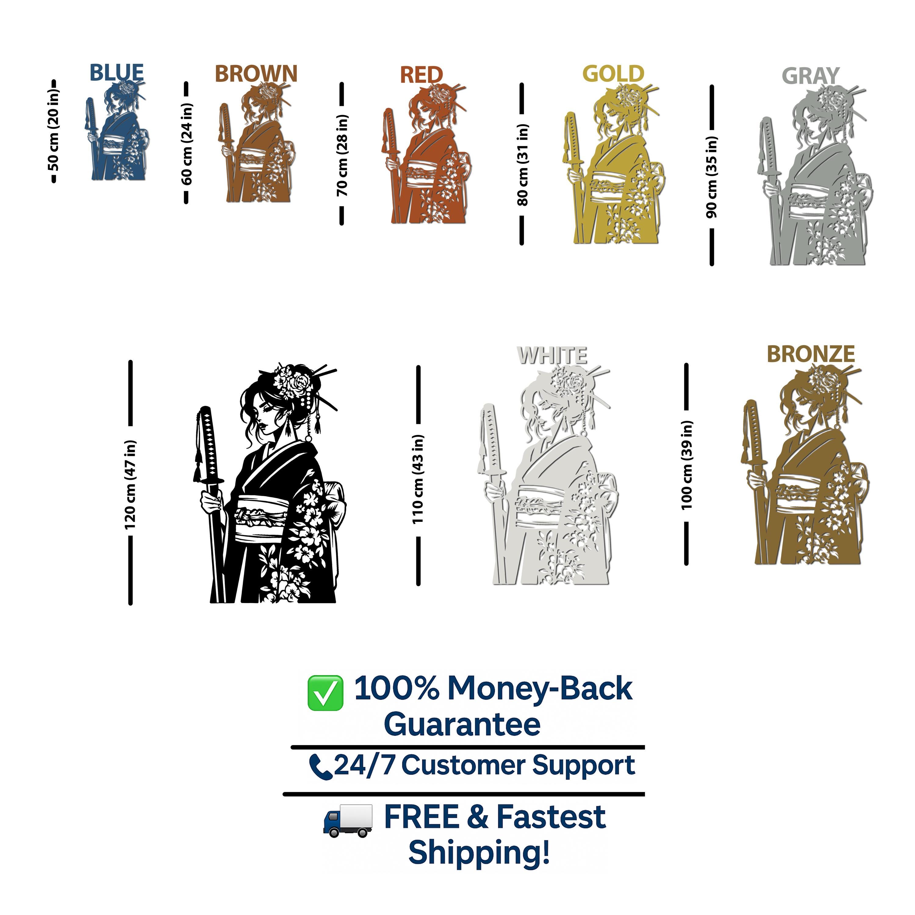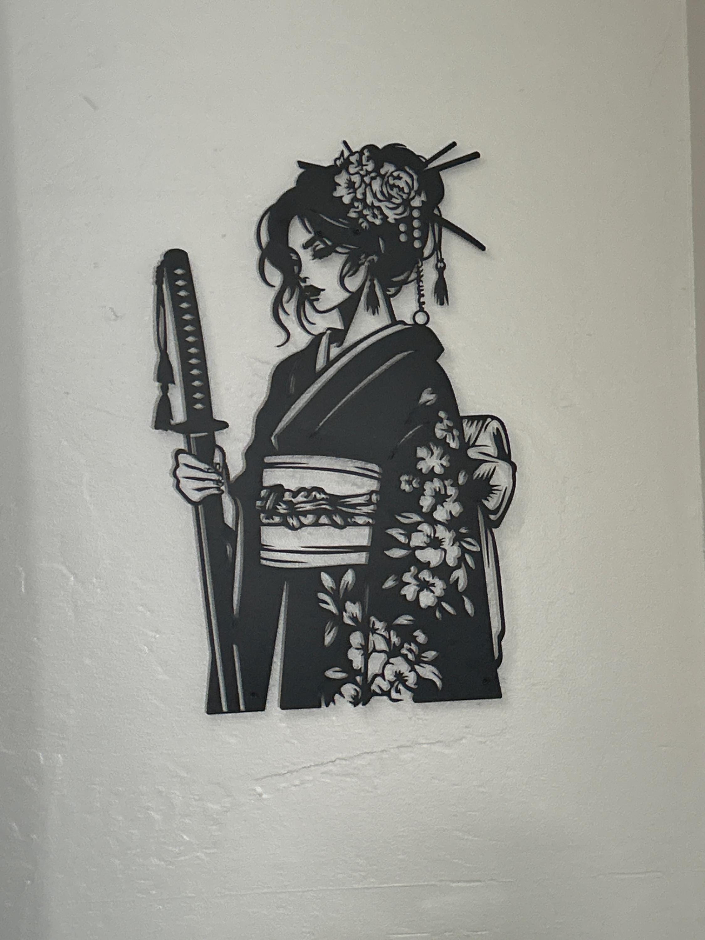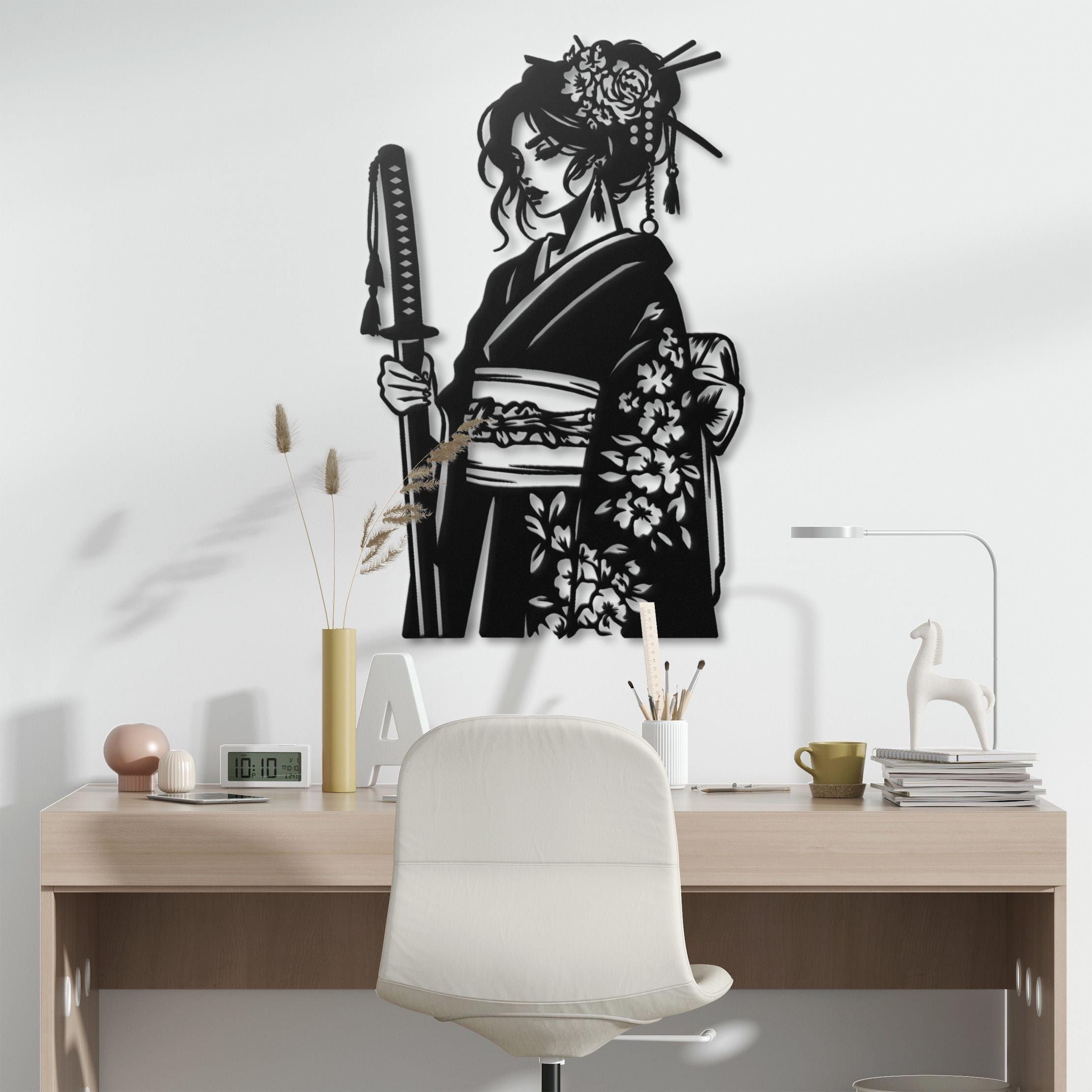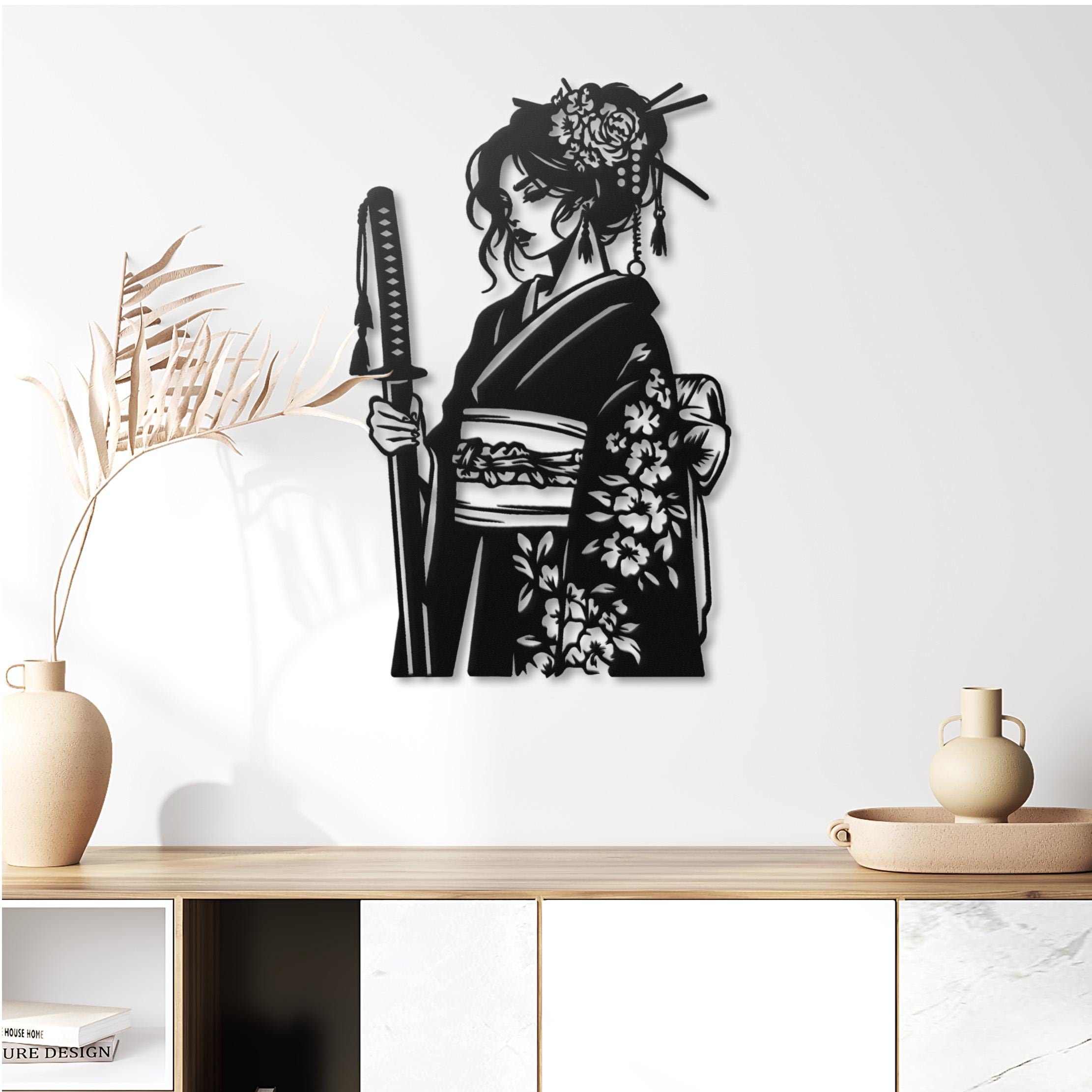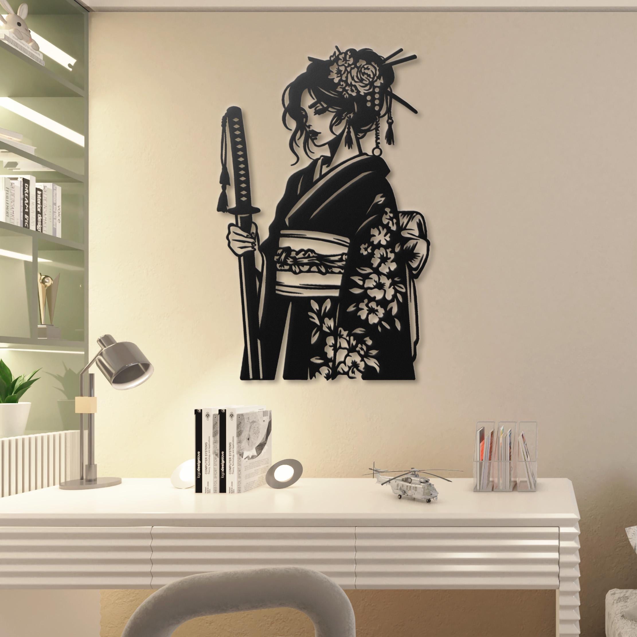 Geisha Samurai Metal Wall Art, Japanese Onna Bugeisha Decor, Female Warrior Katana Sign, Anime Wall Hanging, Asian Zen Art, Gift for Her