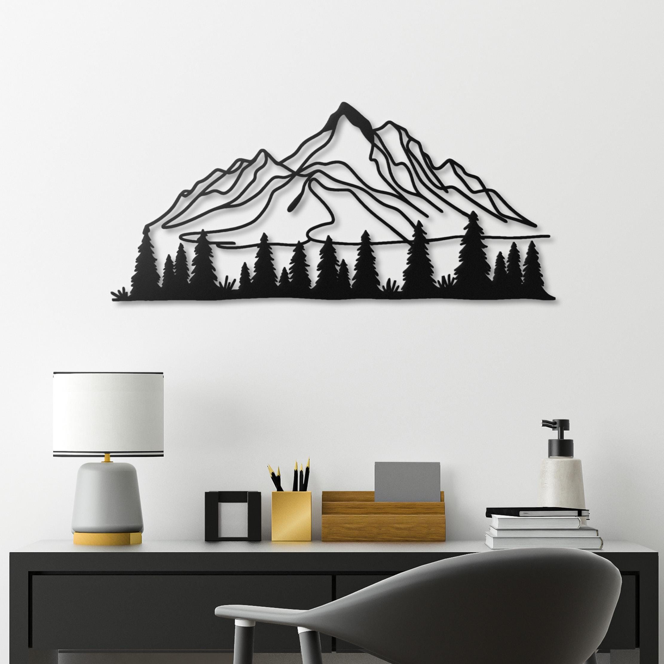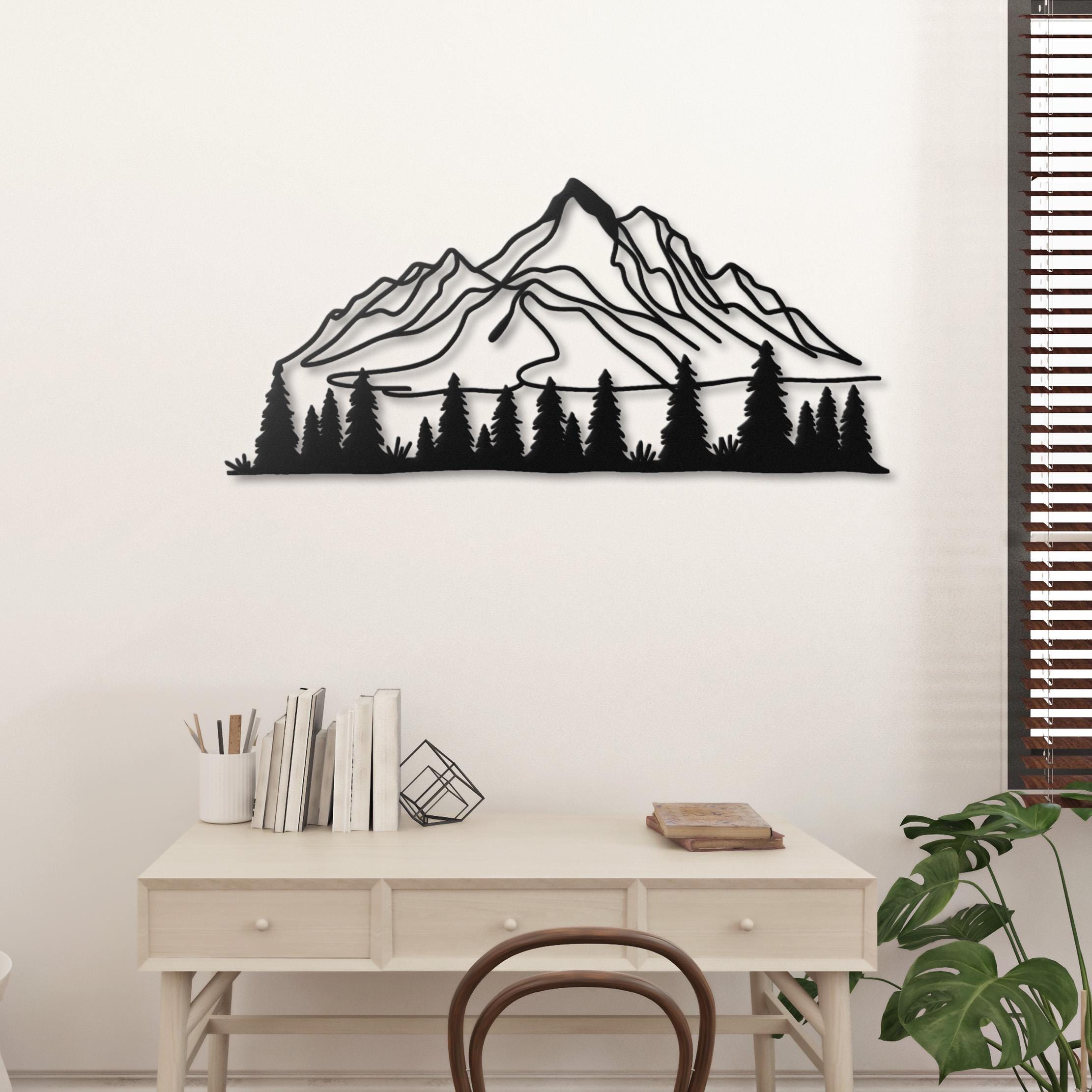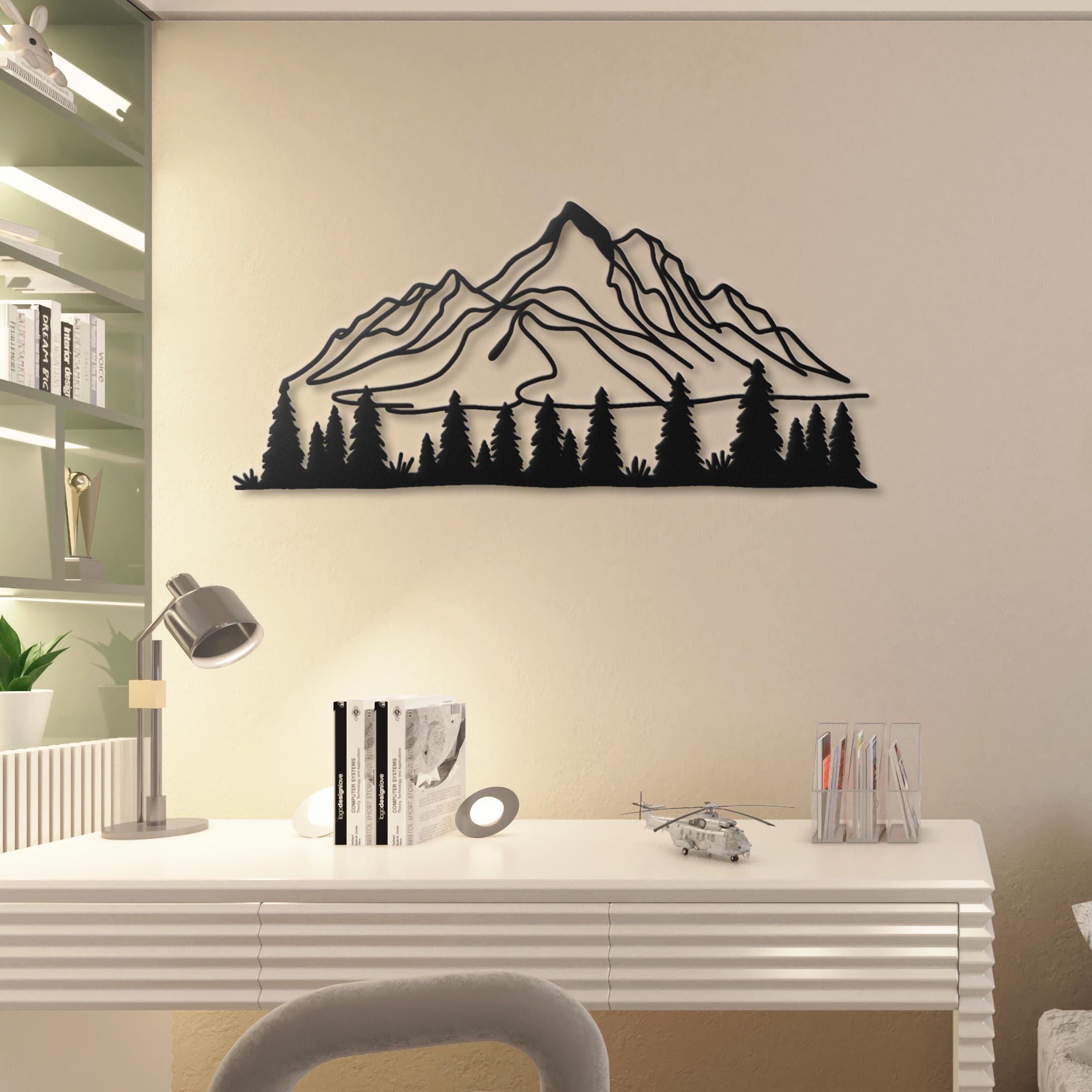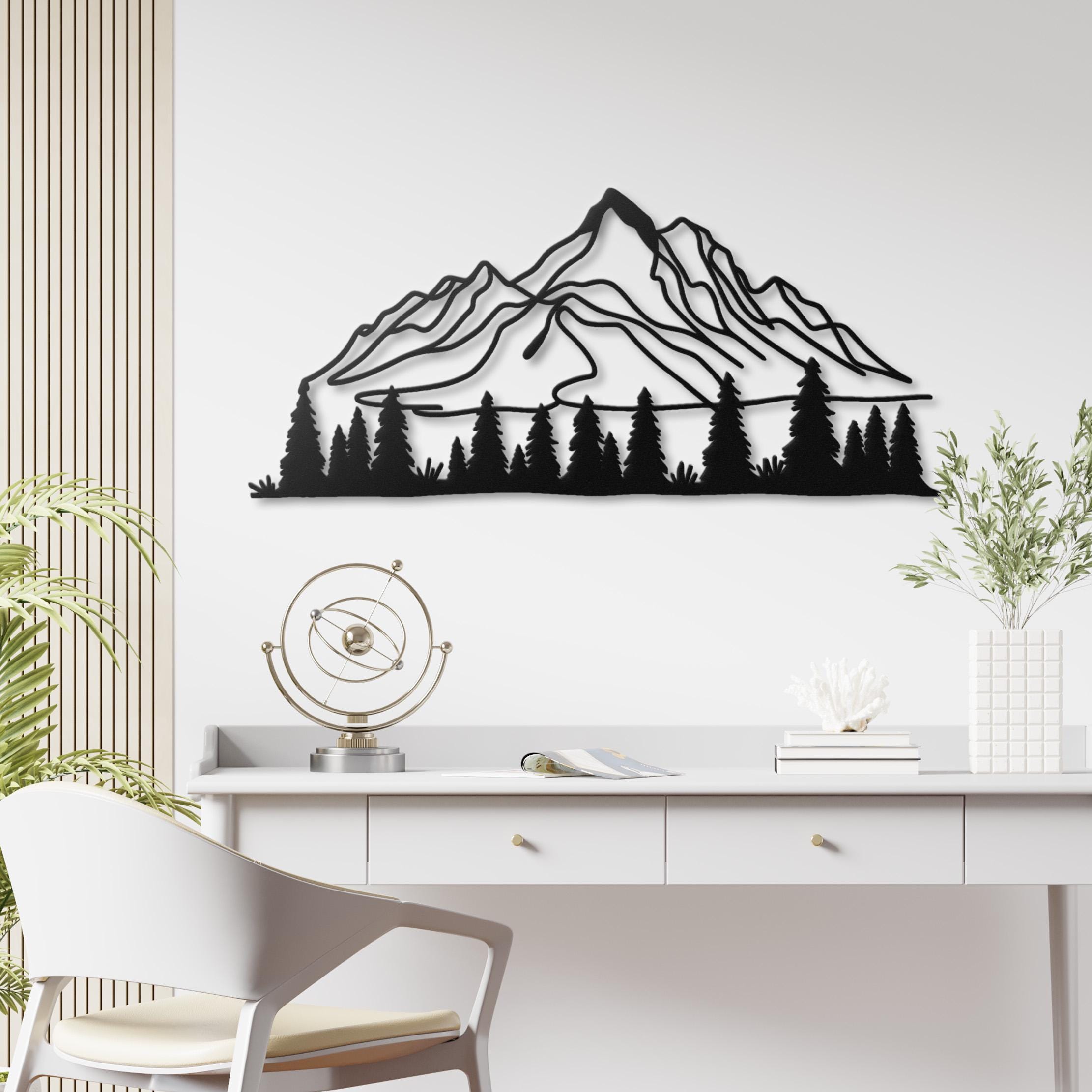 π² Made with the highest quality metal, this wall art is a durable and timeless addition to any living space. The intricate details of the mountains, pine trees, and rising sun create a sense of depth and dimension that will captivate your guests.