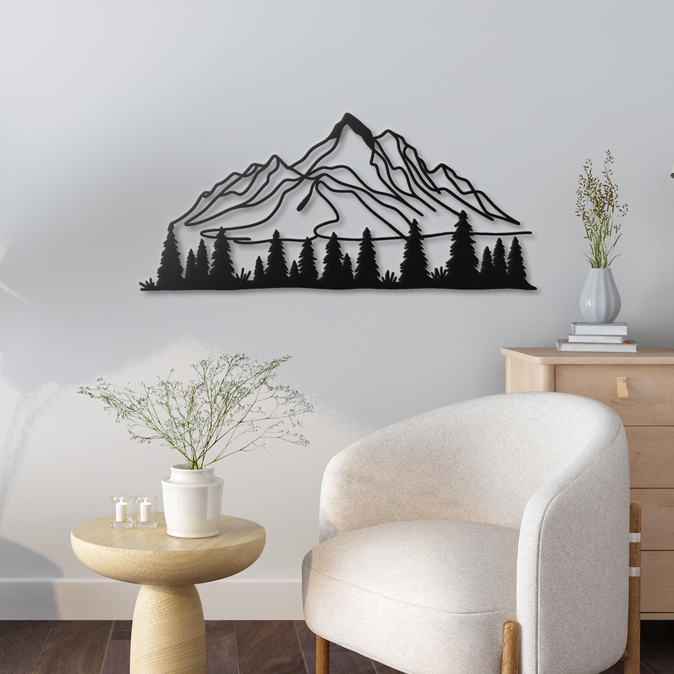 Metal Mountain Range Wall Art: Pine Tree Forest, Metal Mountain Decor