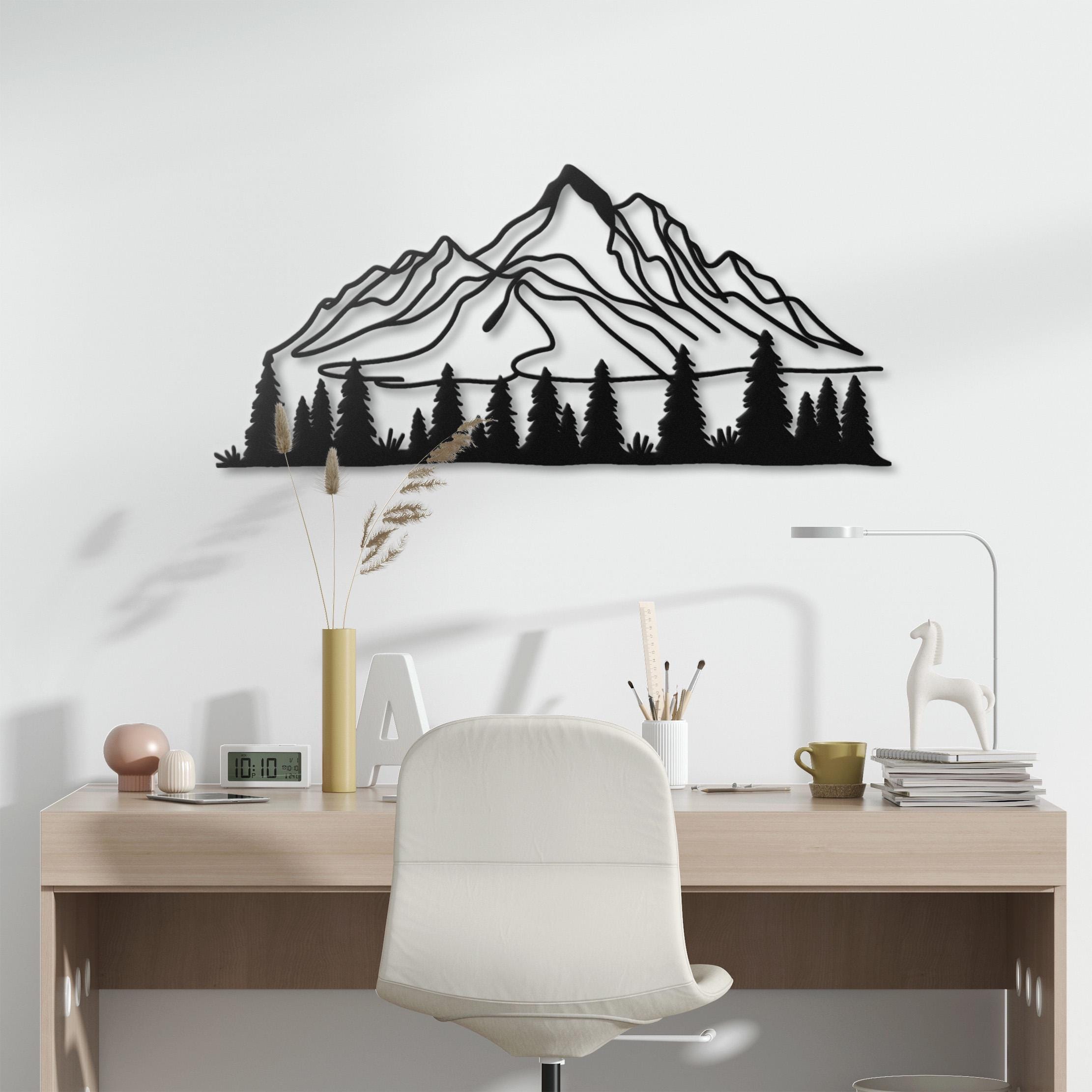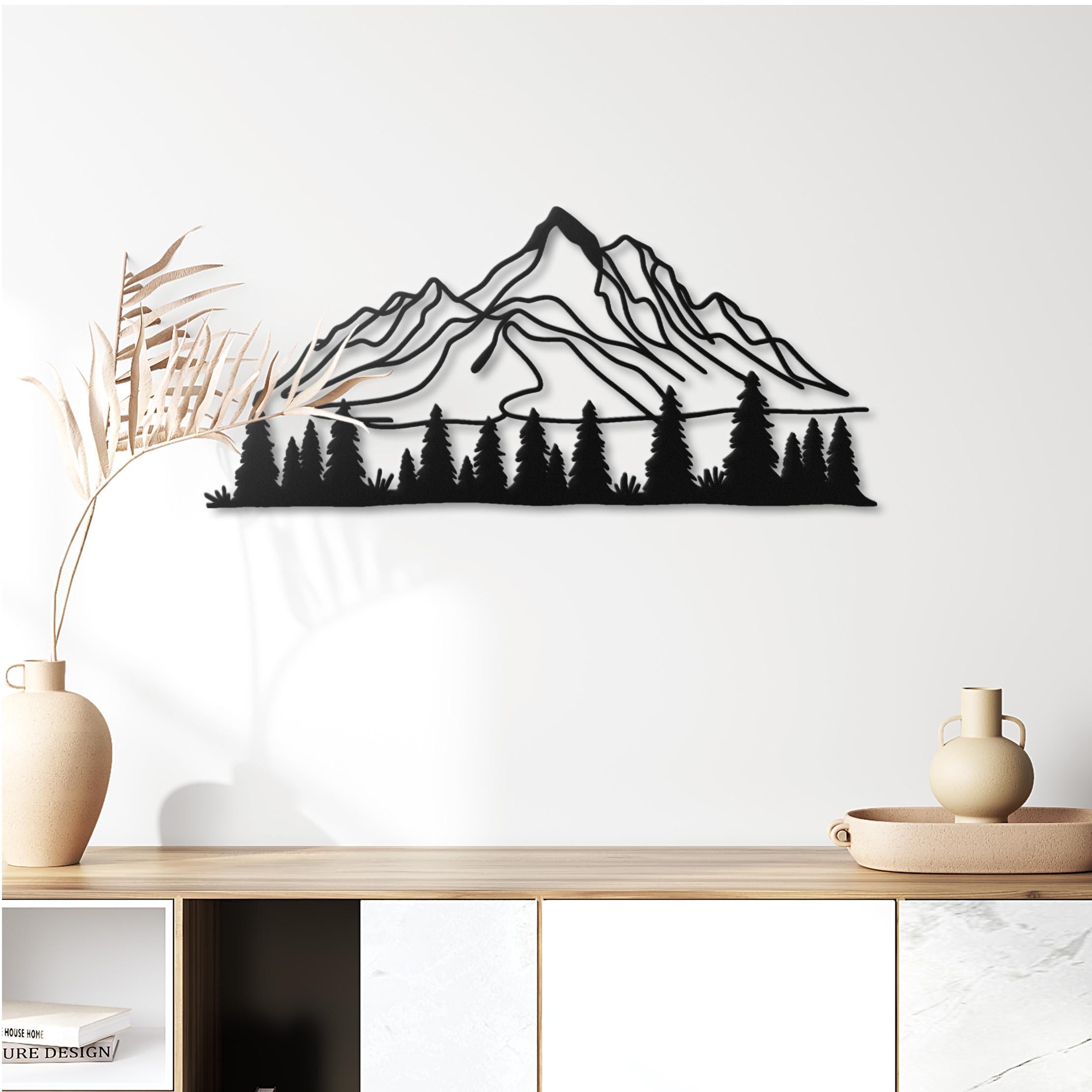 π‘ Bring the beauty of nature into your home with this stunning Mountain Range and Pine Trees Metal Wall Art!