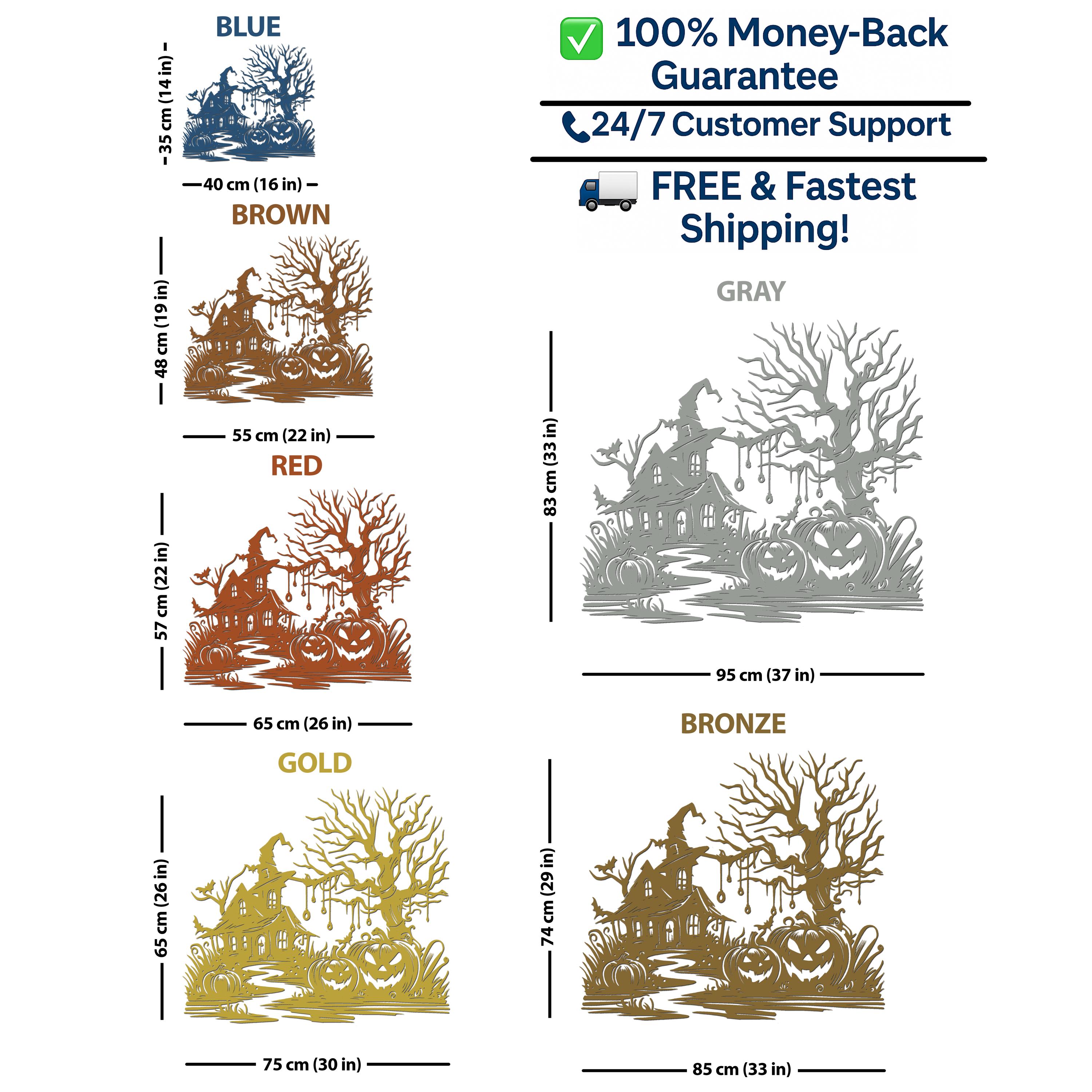 Get your home ready for a spooktacular season with this amazing haunted house metal wall art! ππ» This piece captures the entire spirit of Halloween in one incredible scene, featuring a creepy witch's cottage, a gnarled tree, and a patch of grinning jack-o'-lanterns. It's the perfect centerpiece for all your festive frights!
