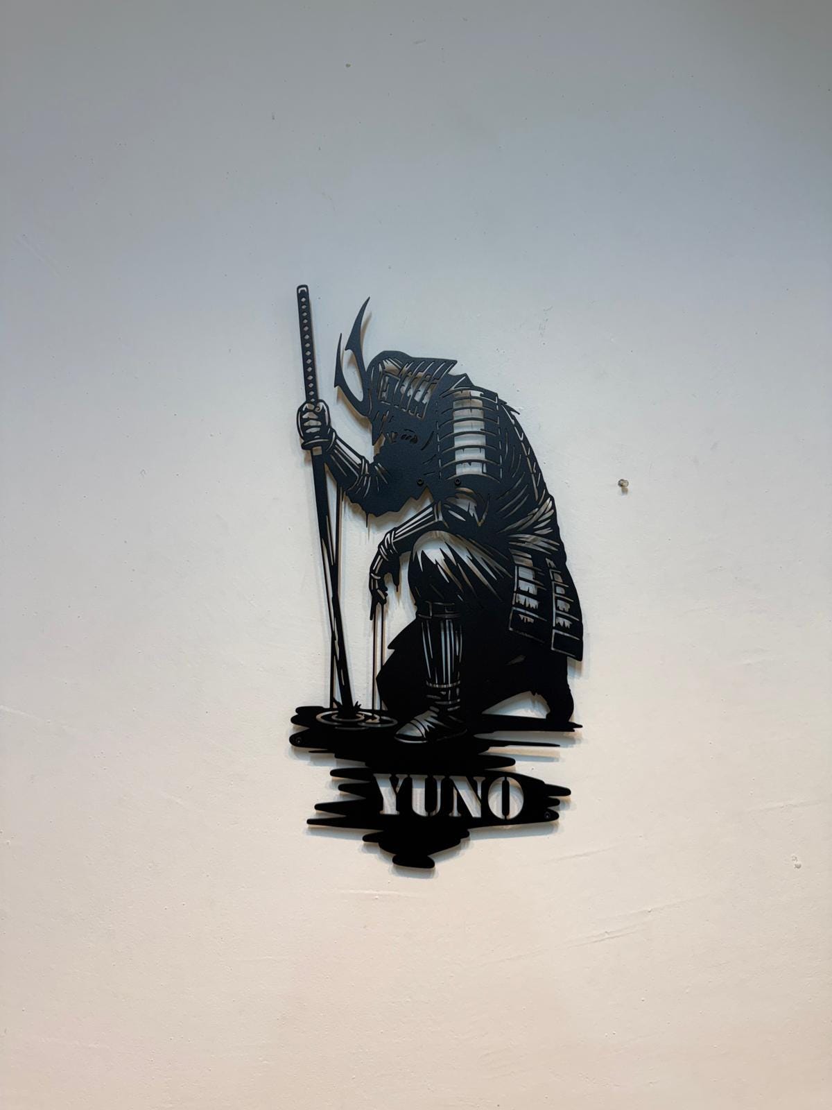 Elevate your space with this detailed silhouette of a Japanese warrior! 🏯 Featuring a kneeling samurai with a katana, this piece adds a bold, honorable touch to any room. Perfect for martial arts fans, gamers, or as a unique Father’s Day gift. 🎁
